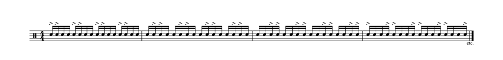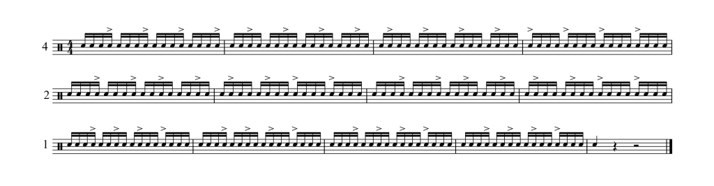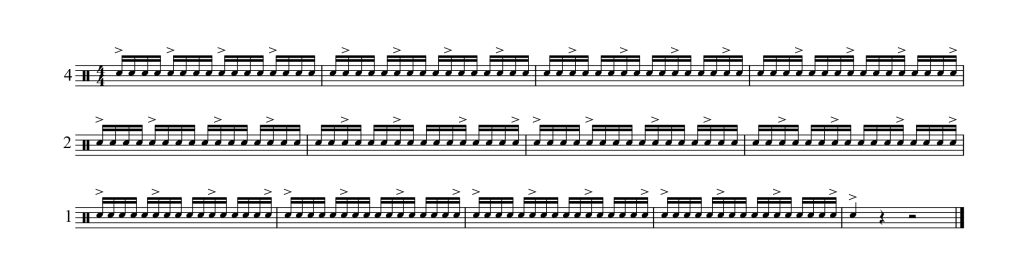 We begin by using one of the most common exercises as our explanation and subsequent point of departure, the sixteenth-note accent pattern (4-2-1):