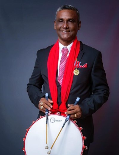 There are many tassa bands in Trinidad, but the band that honors itself as the global ambassador for tassa drumming is the NGC Trinidad & Tobago Sweet Tassa International band. This band was founded by Ustad Lenny Kumar, HBM, a professional tassa drummer with over 50 years of experience. Kumar is a fifth-generation tassa drummer, coming from a rare musical bloodline similar to that of the late tabla maestro Ustad Zakir Hussein. Kumar started training at the age of five and became a professional player by the age of eight. His youth drumming skills afforded him a well-earned reputation as a local musical prodigy, playing alongside his father and many local professionals. As the years went by, Kumar, his father, and his siblings had a family-based tassa band, which won numerous awards.