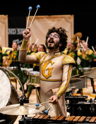 In 2025, the George Mason University Indoor Drumline (GMUID) set forth on a bold exploration (much like our Colonial forebears) in an attempt to define what we are as an activity. Committing ourselves to an absurd framework, we placed a live action George Mason at the focal point of our production, a tool that could function simultaneously as our literal mouthpiece as well as the buffoon who purports to be at the helm of his own show, only to be whiplashed around by conventions of the indoor percussion activity that are too powerful for him to suppress or control. We created a boisterous character with a big personality to do our bidding: the founding father who’s also a university and a drumline. And thus, The George Mason Show was spawned.